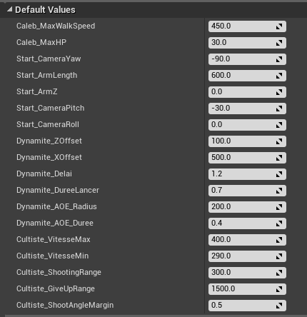 Permettre de tweaker facilement toutes les variables globales (sur Caleb, les cultistes, la dynamite) et contrôler l’expérience de jeu